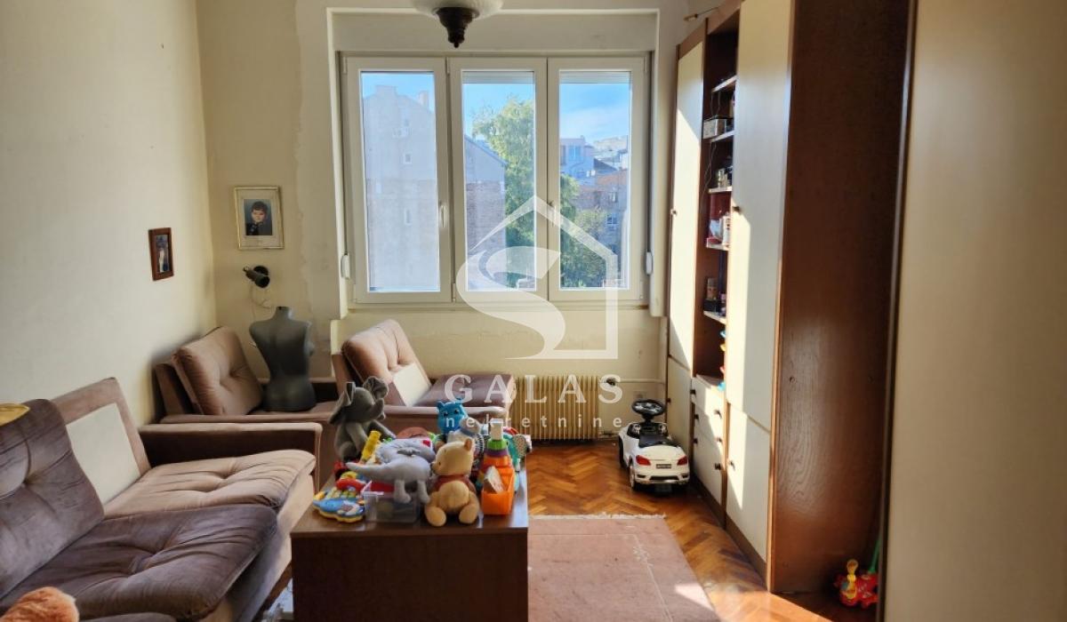 The apartment is located on the third floor of a pre-war building without an elevator. Registered area 76m2, measured 86m2. Excellent location, just 150m from Skadarlija and Bitef theater and a bit secluded from Bajloni market. A classic living room with 2 entrances, which offers the possibility to make one apartment into two completely separate units (a studio and a three-room apartment). The apartment consists of a hallway, a kitchen, a girl's room, 3 large rooms, a bathroom, a toilet, a terrace and a French balcony. PVC joinery is installed throughout the apartment. This is an apartment for buyers who can recognize an apartment with a lot of potential that is worth investing money to fix up.