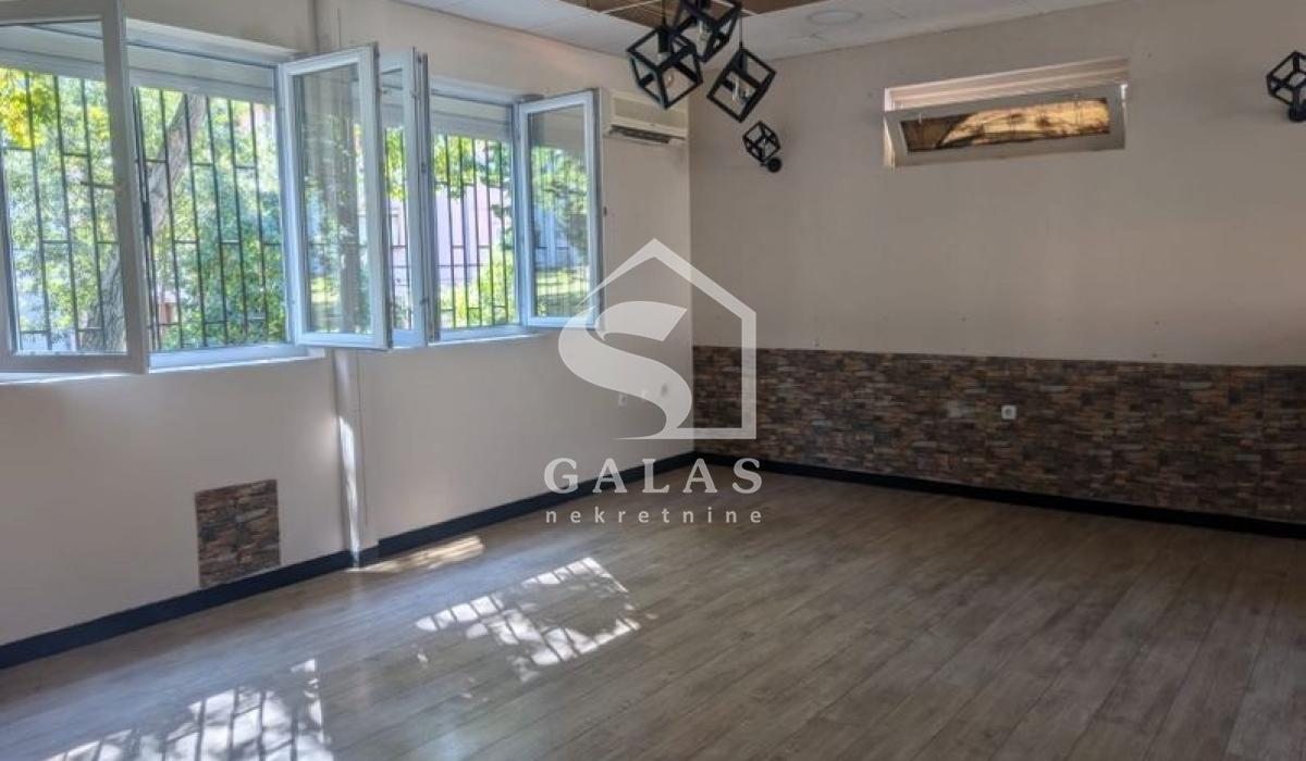 Sastoji se od jedne velike prostorije veličine od oko 50m2 koja ima ugrađen šank, malog hodnika koji vodi u manju prostoriju od oko 20m2 koja ima svoj poseban ulaz pa je odličan prostor za kuhinju ili magacin, ostave i toaleta. Uz lokal se dobija i dvorište koje je ograđeno i pripada ovom lokalu.