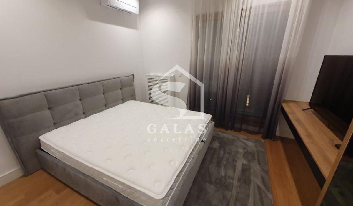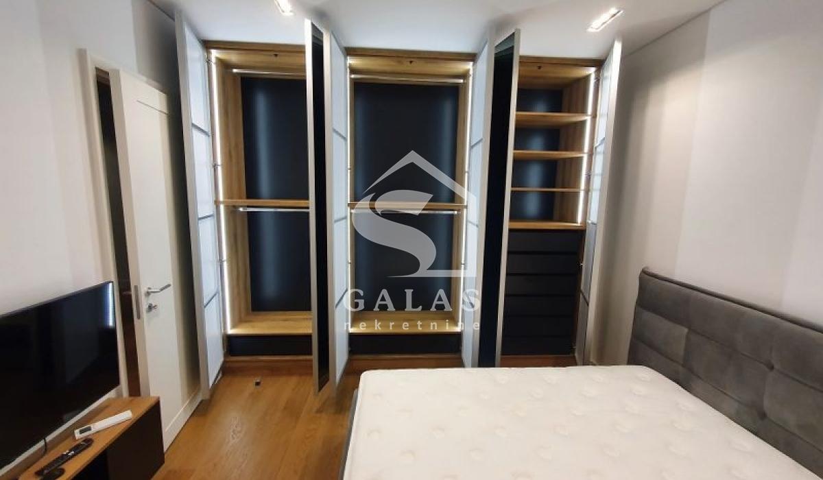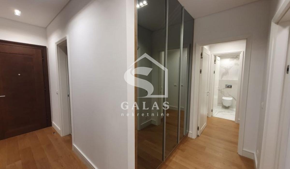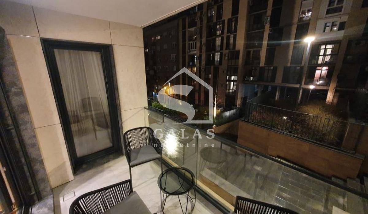 This luxurious three-bedroom apartment is located in the Kneza Milosa Residence Complex, which has a luxurious spa center on the ground floor with a 35-meter pool, a gym, and a sauna. The building has security and a 24-hour reception.