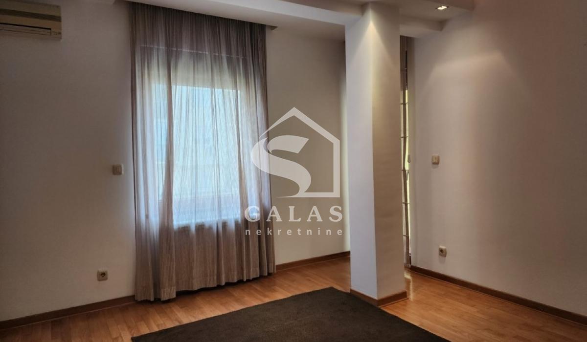 Na samo 200m od Hrama u ulici Stojana Protića u novijoj zgradi nalazi se ovaj prostran stan koji se sastoji od velikog dnevnog boravka sa trpezarijom, potpuno zasebna velika kuhinja, 4 spavaće sobe od koje je jedna master soba sa svojim kupatilom u kojoj je tuš kabina i gardaroberom. Još jedno kupatilo je na raspolaganju sa jakuzi kadom i još jedan gardarober. Dve terase a ono što je posebno neobično i veliki plus ovog stana je izlaz u dvorište od čak 200m2 koje koristi samo ovaj stan, pravi mali raj nadomak Hrama Svetog Save i Čuburskog parka.
