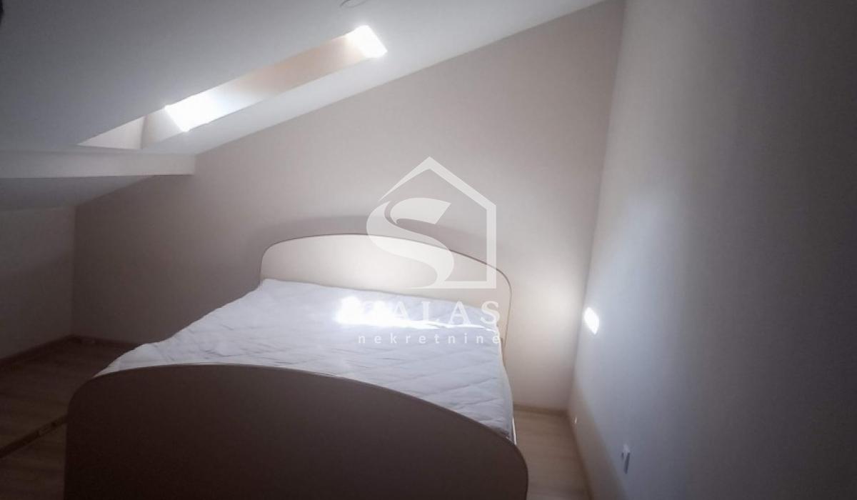 U donjem delu je dnevni boravak sa kuhinjskim delom i kupatilo a na spratu spavaća soba. Nameštaj je relativno nov. Grejanje je na klimu i izuzetno je povoljno. Od režija se plaća samo struja i kablovska koju zakupac sam uvodi.