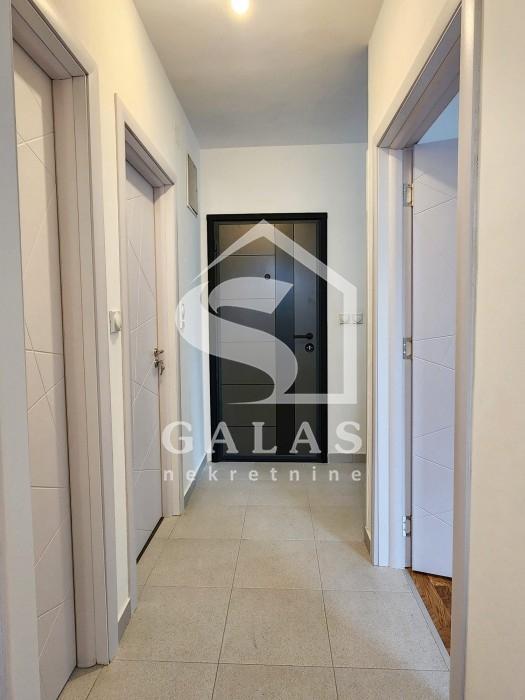 Nalazi se u visokom prizemlju, idealnog rasporeda. Iz hodnika se ulazi u sve prostorije: dnevnu sobu, spavaću sobu, kupatilo i ostavu. Stan je svetao i dvostrano orjentisan. Grejanje centralno na gas.