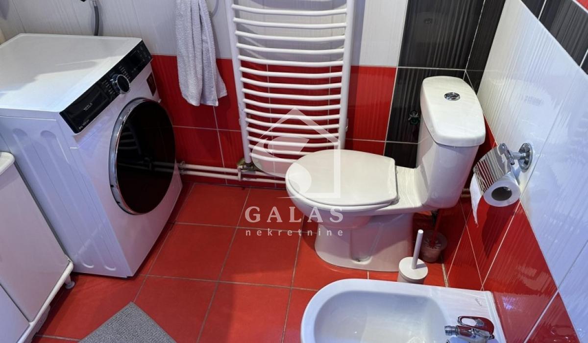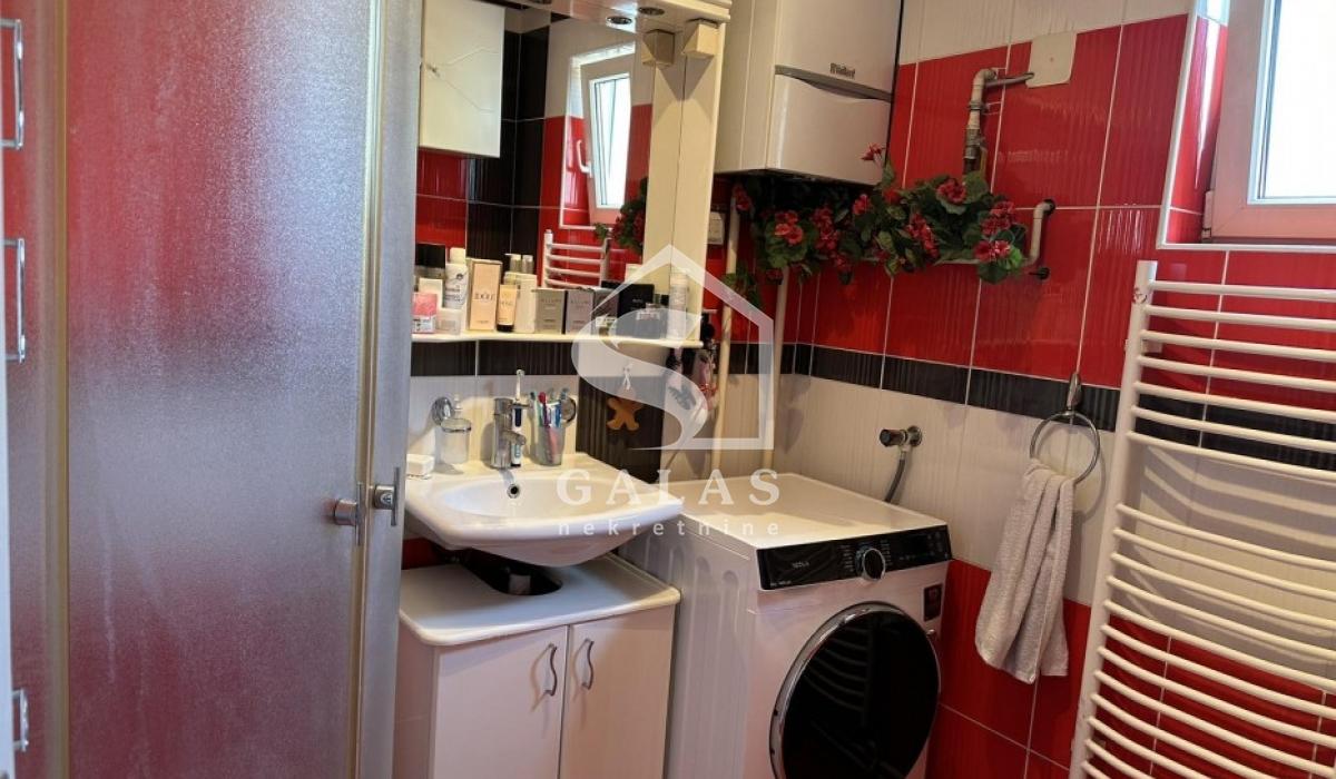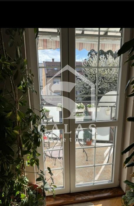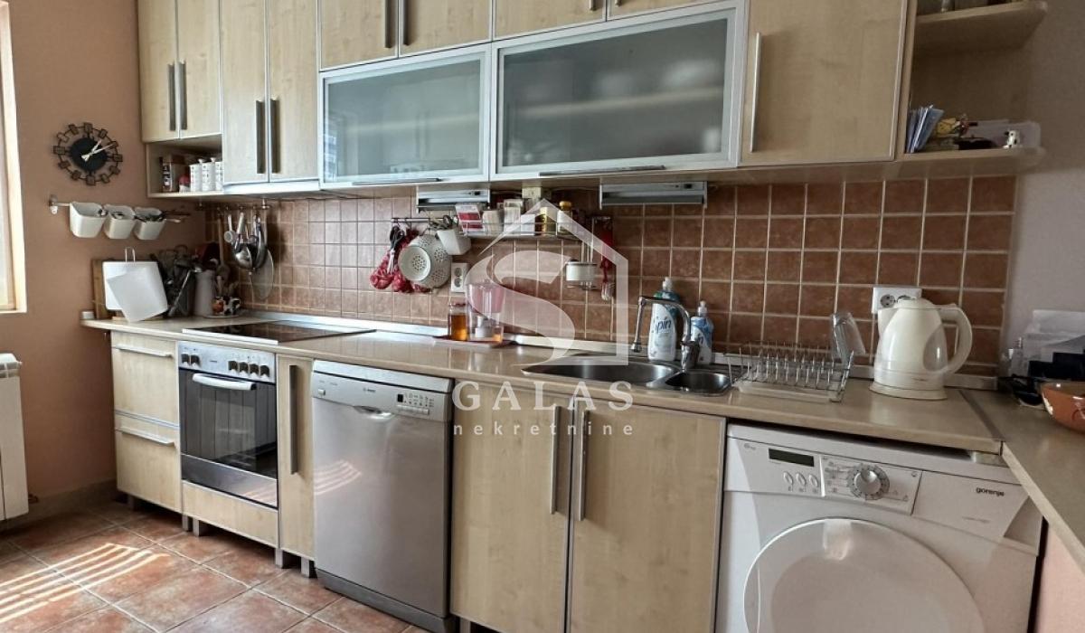 Dvostrano je orjentisan, sunčan, prostranih prostorija i visokih plafona. Sastoji se od velikog antrea koji se koristi kao trpezarijski deo, prostranog kuhinjskog dela izdvojenog šankom, dnevne sobe i tri spavaće sobe, kupatila, toaleta i preslatke terase. Uz stan ide i podrumska prostorija kao i tavanski prostor odličan za odlaganje nepotrebnih stvari.