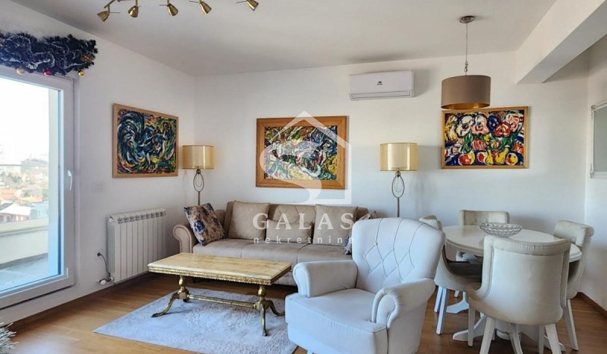 Odličan dviposoban stan na poslednjem povučenom spratu ( iznad je kosi krov ) novogradnje visokog kvaliteta sa energetskim pasošem, video nadzorom, liftom.