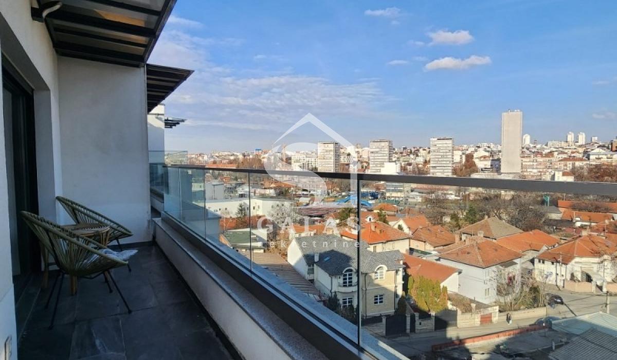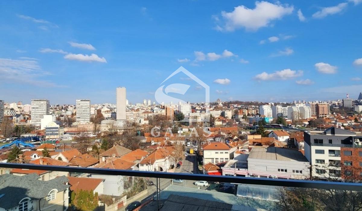Stan odlikuje velika količina svetlosti i prostrane prostorije. Uknjižen na 64m2 sa velikom terasom u G sa kojom ukupno ima 75m2, sa koje se pruža prelep pogled na ceo grad.